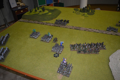 Австрийская артиллерия дала ещё один залп и у неё кончились боеприпасы. После чего её остатки были убраны со стола. (На одну батарею за игру два раза бросал дубль один). Между тем и британцы стали испытывать недостаток в боеприпасах.