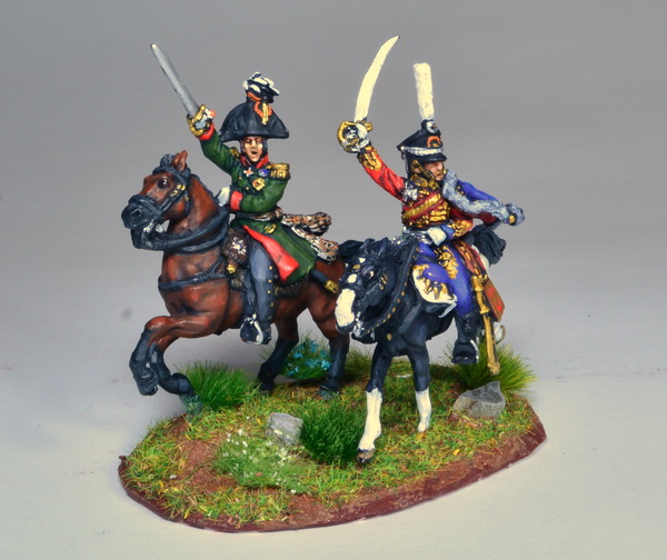 Следующие командиры - командир 2-й бригады 2-го резервного кавалерийского корпуса генерал-майор Панчулидзев 2-й, и командир Изюмского гусарского полка - полковник Граф Долон. Опять же, фигурка Багратиона и тут пригодилась. База командира чуть длиннее, чем положено, для красоты))