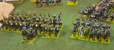 Пока доблестные уланы русской армии прессуют карабинер, развернулась лёгкая кавалерия французов.